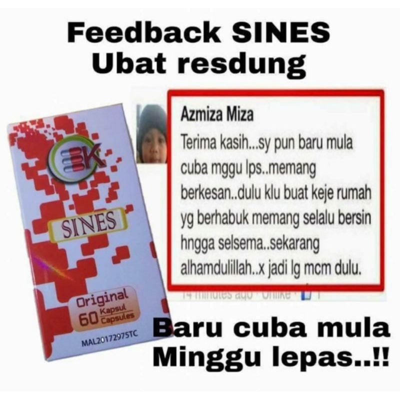 Ek Sines Ubat Resdung Ek Sines Dapat Menyelesaikan Segala Masalah Resdung Hidung Gatal Selsema Dan Sebagainya Diluluskan Dan Disahkan Selamat Oleh Kementerian Kesihatan Malaysia Dgn Nombor Pendaftaran